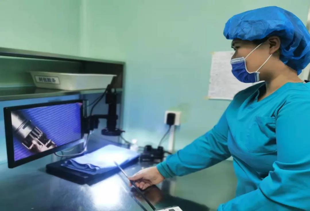 清洗完成后,应用50倍电子成像放大镜检查器械,大到零件是否缺损,小到丝线是否断裂,哪怕0.1毫米的损伤都不能疏忽,经过细致的检查确保无误以后,才可以进入到下一个环节。灭菌时,各项监测要达到国家的规范要求,直到灭菌成功,检查各项监测合格,予以发放。