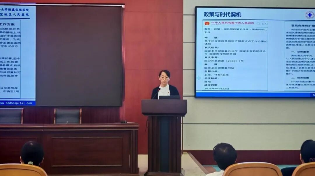 2025年12月26日,天津市宝坻区人民医院护理部组织召开护理人员新技术新项目开展、免陪照护服务开展成果汇报会。会议由内科系护士长高海英主持,各学科护士长、学科骨干共计100余人现场听取进修人员的汇报分享。
